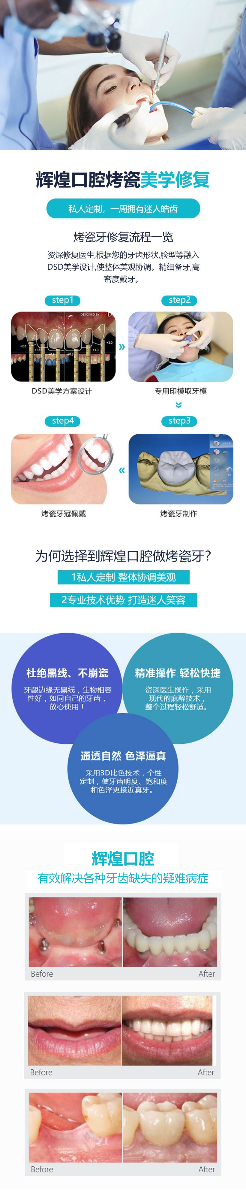 诊疗项目:烤瓷牙,牙齿修复